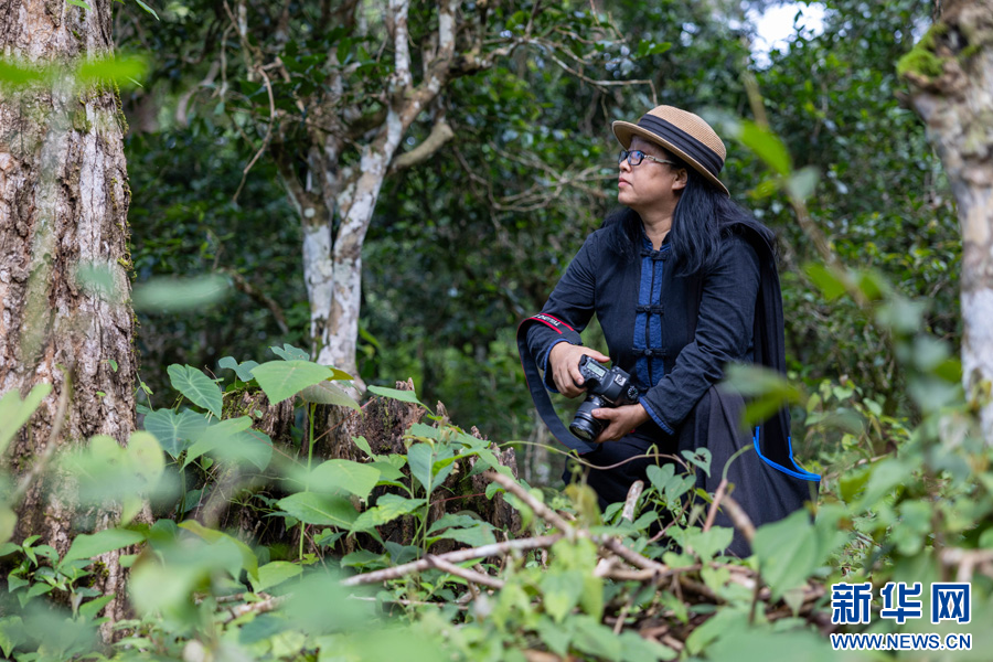 熊登奎在茶林里拍摄古茶树(8月14日摄)。新华网发 李浩 摄