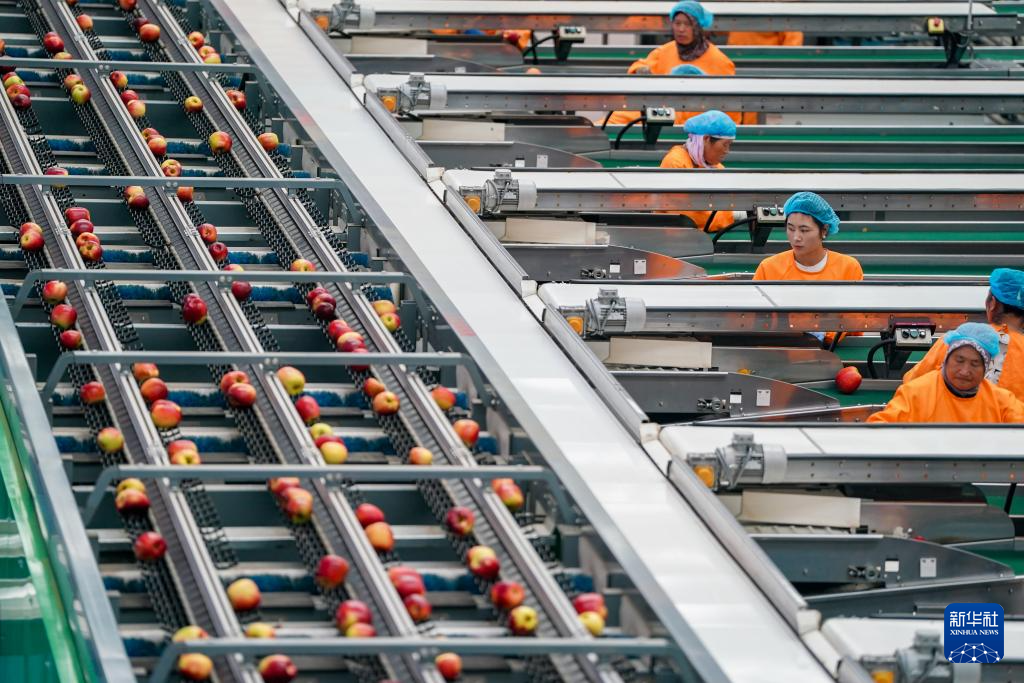 9月29日,工作人员在昭通市超越苹果基地苹果分选线上工作。新华社记者 陈欣波 摄