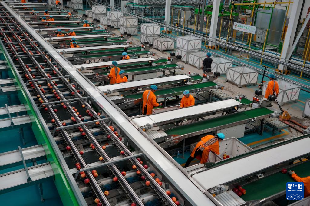 9月29日,工作人员在昭通市超越苹果基地苹果包装车间工作。新华社记者 陈欣波 摄