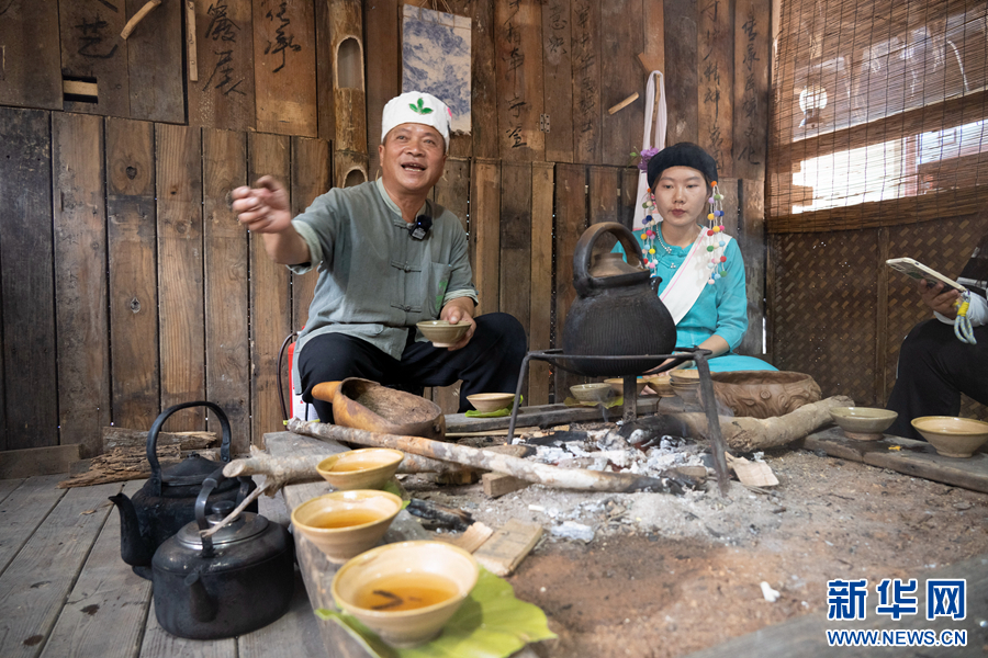 南康正在向来访客人讲述景迈山“烤茶”里的故事(9月26日摄)。新华网发 刘起 摄