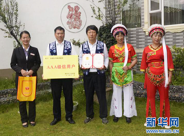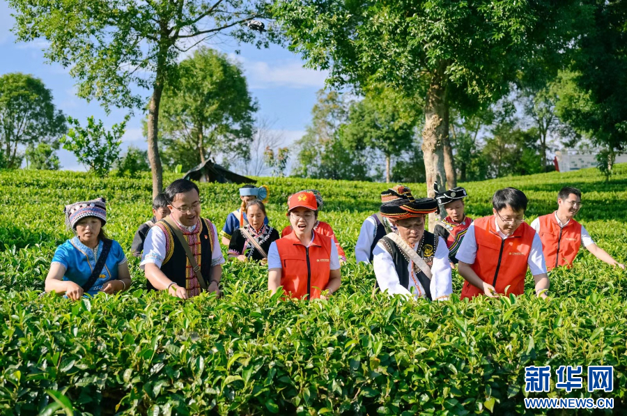 工作人员了解茶叶发展情况(资料图)。新华网发(云南农信社供图)