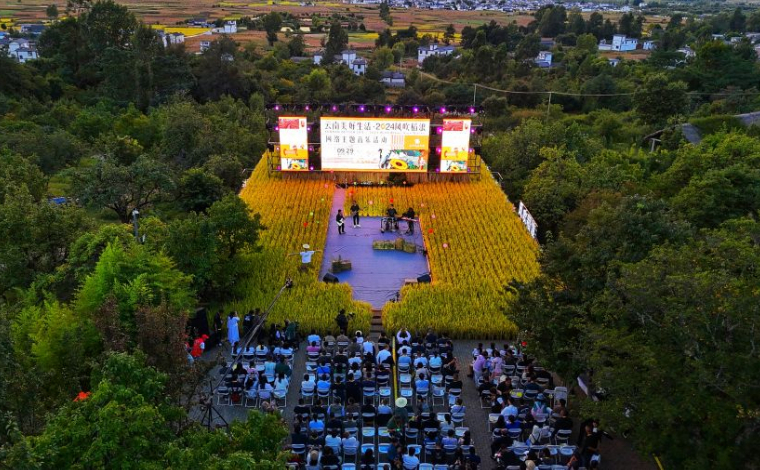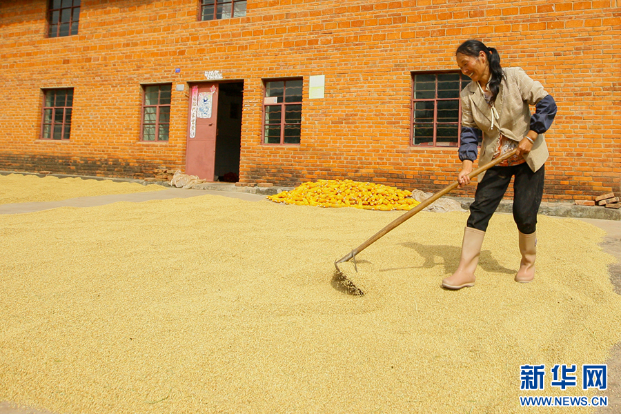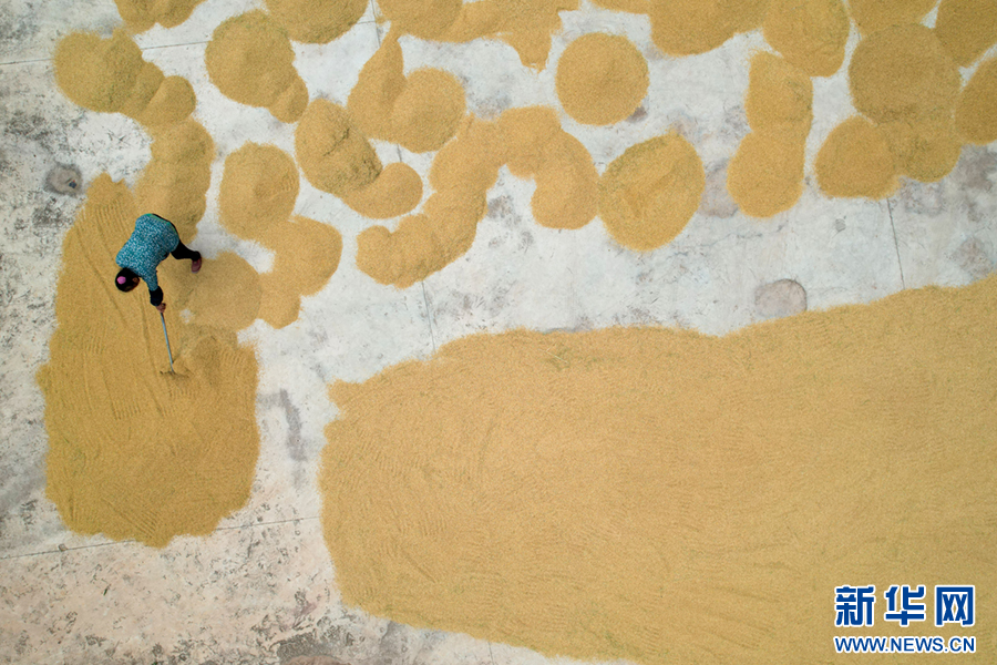 9月28日,云南省曲靖市沾益区威格村,农民正在晾晒稻谷。新华网发(杨俊鹏 摄)