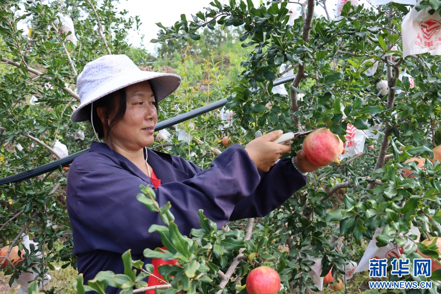 果农正在采摘石榴(资料图)。新华网发(会泽县融媒体中心 供图)