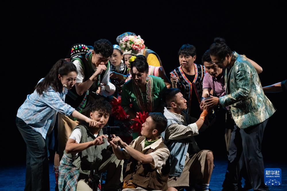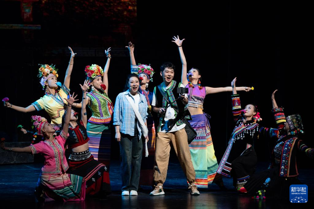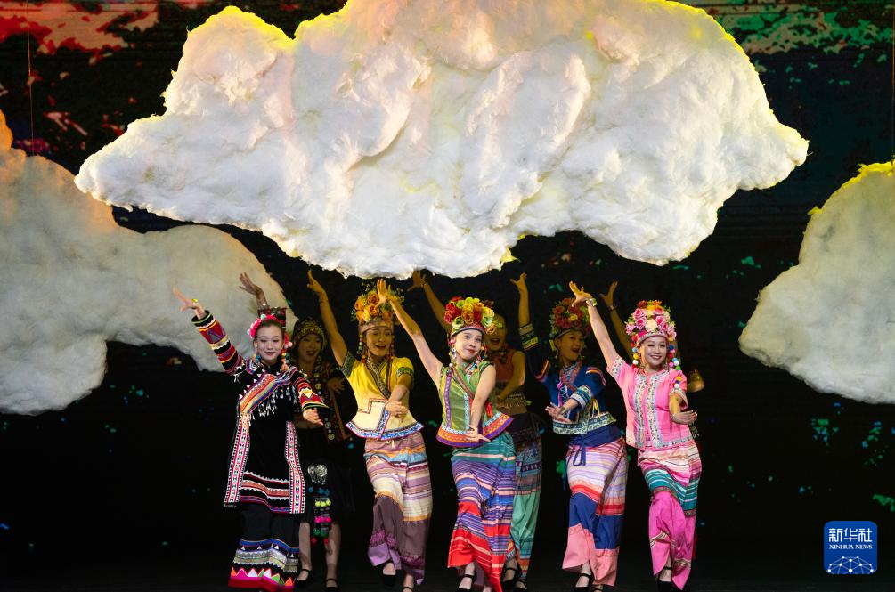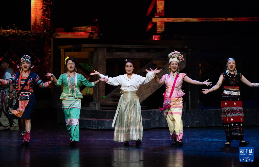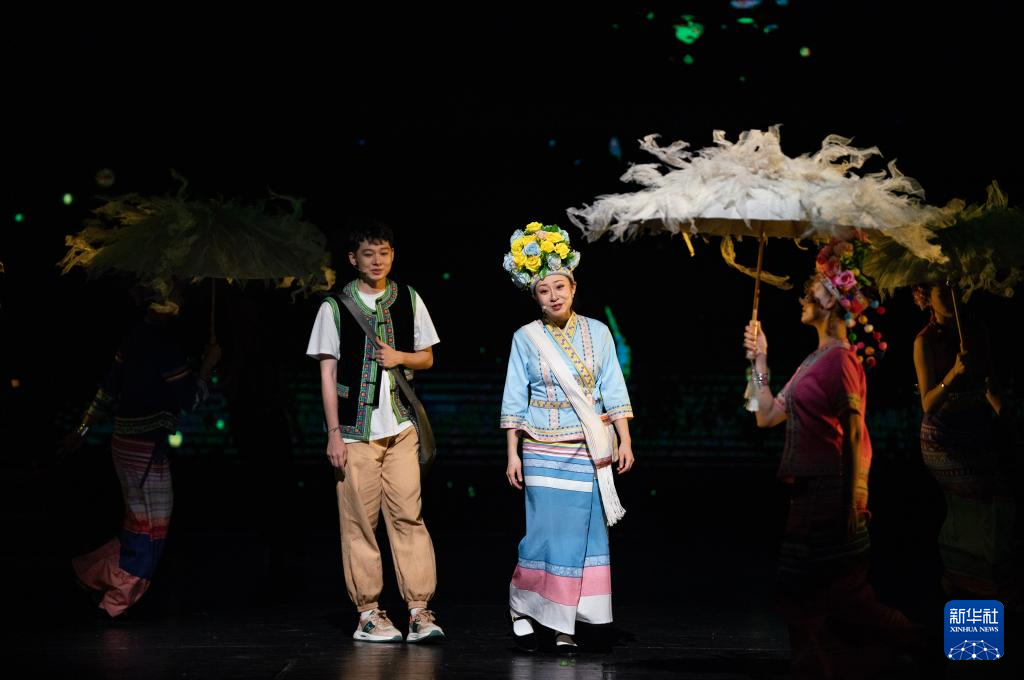 10月18日晚,演员在云南省大剧院表演音乐剧《景迈有嘉木》。新华社记者 陈欣波 摄