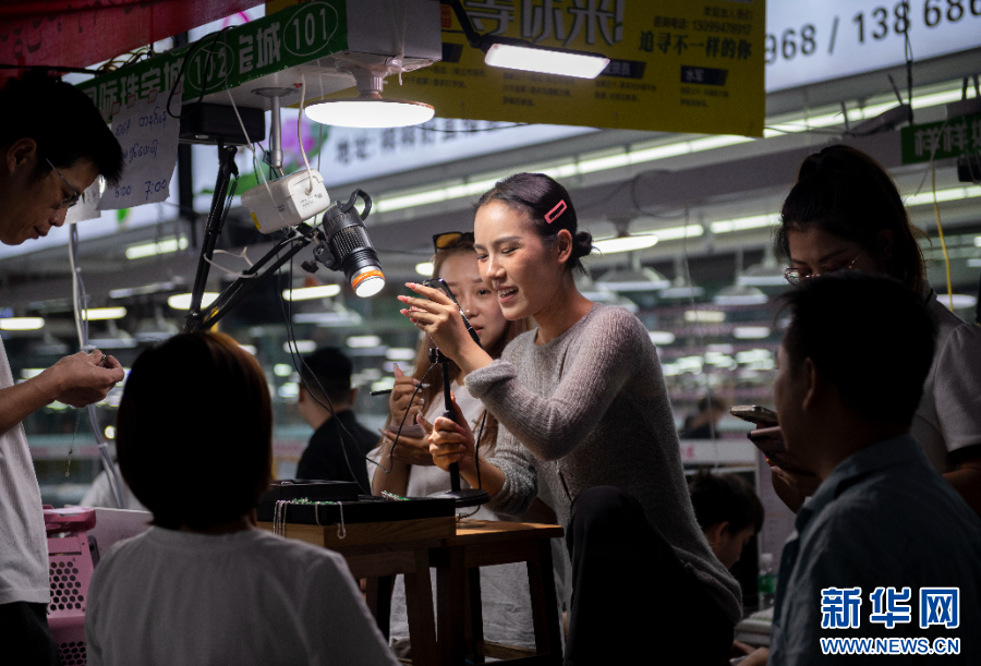 一名主播在瑞丽市样样好电商直播基地直播卖货。新华社记者 陈欣波 摄