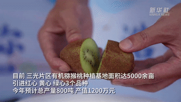 西畴县处于北回归线地带,产出的猕猴桃个大、多汁、甜度高,深受消费者喜爱。目前,三光片区有机猕猴桃种植基地面积达5000余亩,引进红心、黄心、绿心3个品种,今年预计总产量800吨,产值1200万元。