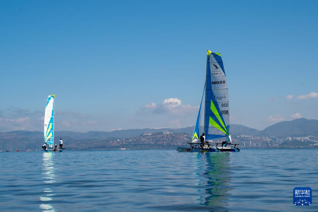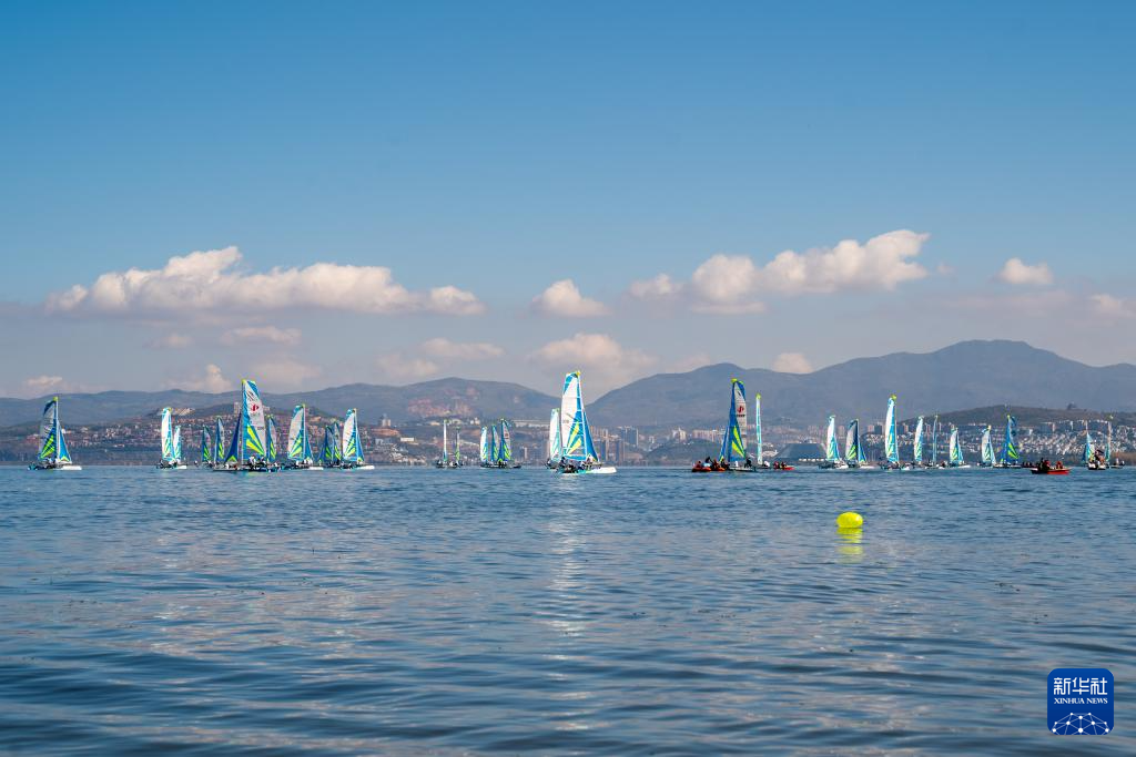 10月26日,参加中国万水千帆赛(大理站)比赛的船只在比赛中。新华社记者 彭奕凯 摄