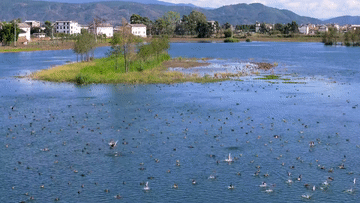 近年来,洱源县不断加强湿地保护工作,生态环境得到了显著改善,湿地面积也在逐年增加,吸引了越来越多的候鸟来此过冬。