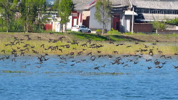 近日,2024年首批迁徙候鸟飞抵云南省大理白族自治州洱源县大树营湿地,为湿地秋色带来一抹生机与活力。
