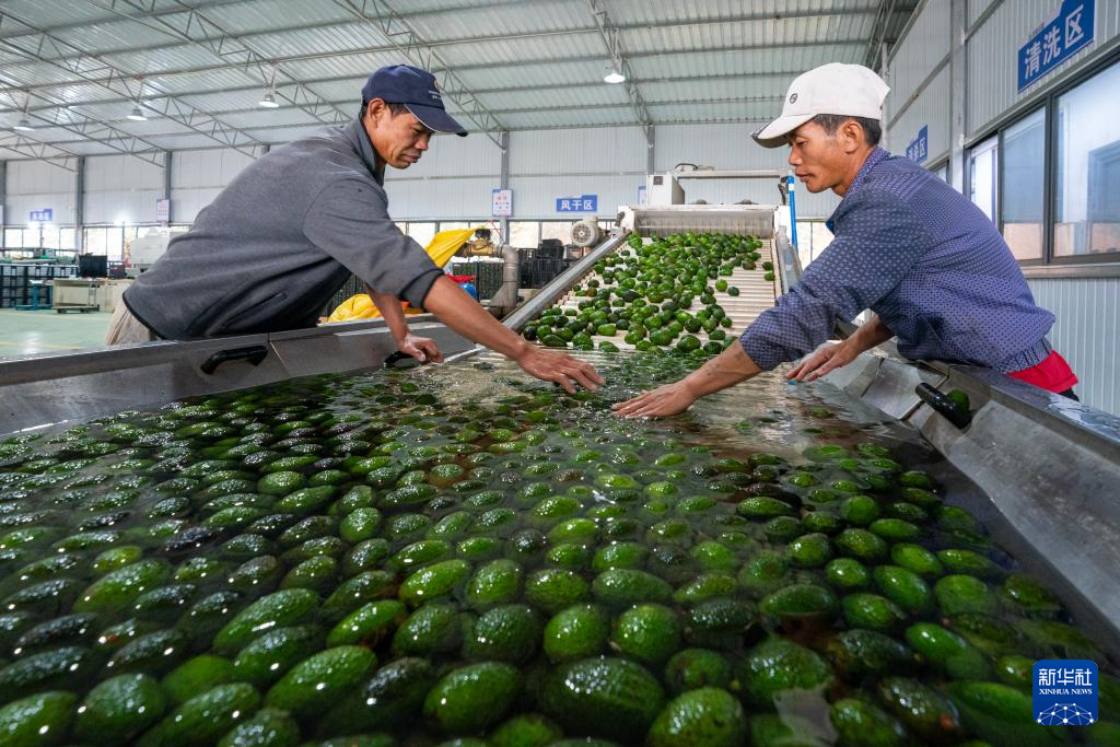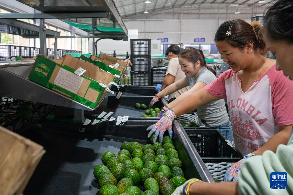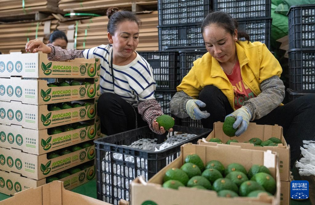 10月29日,工人在中国孟连牛油果集配中心内包装分选后的牛油果。