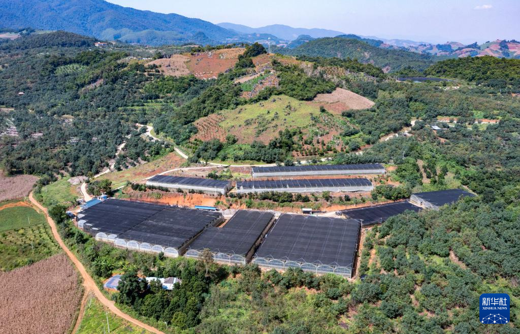 这是10月28日拍摄的普洱绿银生物股份有限公司位于孟连县的牛油果种苗基地(无人机照片)。