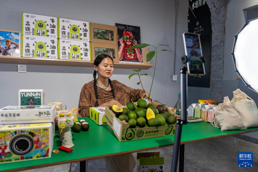 10月28日,孟连县“牛友果星球”农场的一名主播通过直播售卖牛油果。