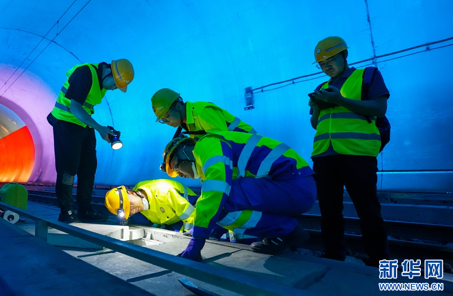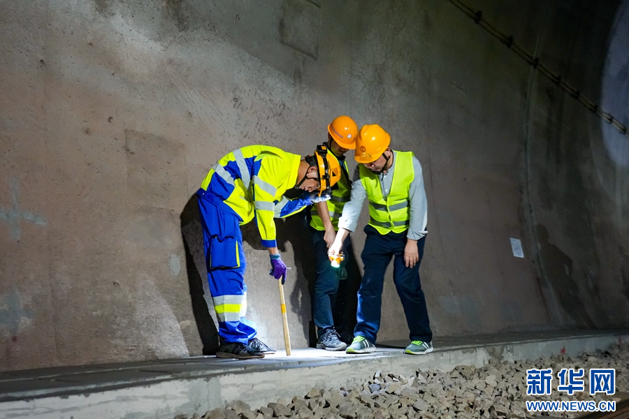 作业人员在隧道里对排水沟进行检查(摄于10月29日)。新华网发(殷学合 摄)