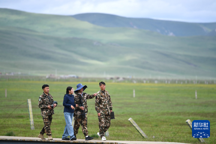 在位于甘肃省甘南藏族自治州的尕海则岔国家级自然保护区,管护中心尕海保护站的工作人员在保护区内巡护(2023年7月7日摄)。新华社记者陈斌 摄