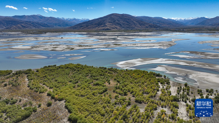 这是雅鲁藏布江宽阔的河床和岸边种植的树木。新华社记者晋美多吉 摄