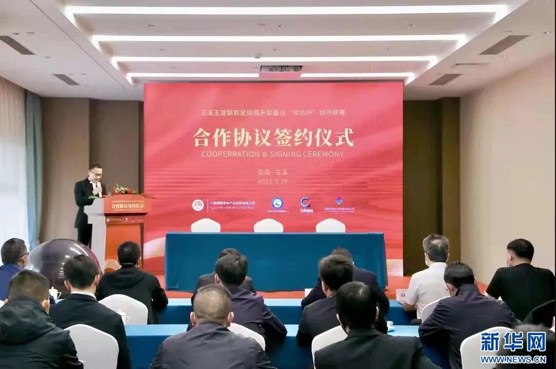 签约仪式现场(2022年3月26日摄)。新华网发(云南玉昆足球俱乐部供图)