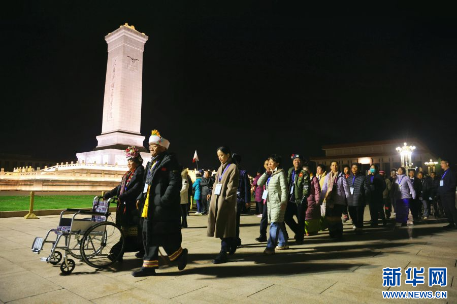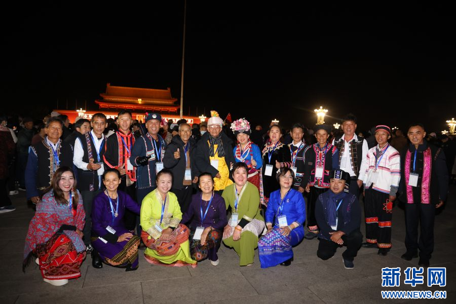 11月6日凌晨四时,云南普洱民族团结誓词碑盟誓代表后代们穿着民族服饰,共同前往北京天安门广场,观礼升国旗仪式。见证这庄严而神圣的一刻,是他们“北京行”的第一站。
