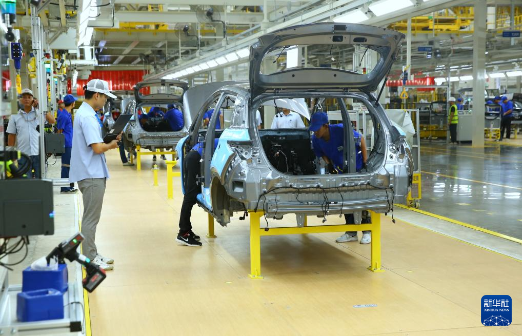 2024年7月4日,工人在位于泰国罗勇府的比亚迪泰国工厂流水线上忙碌。新华社记者 孙玮彤 摄