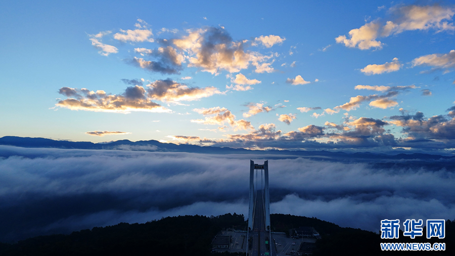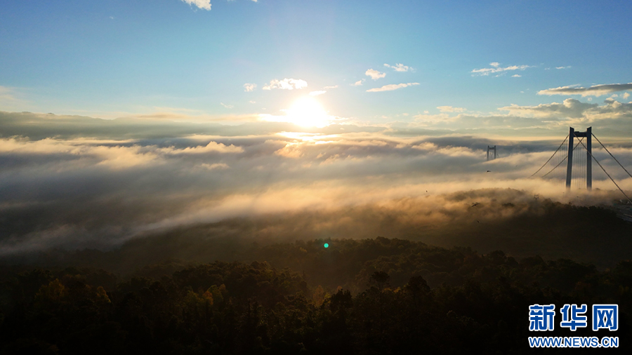 云南龙江大桥立于云海之中(11月11日摄)。新华网发(赵辉 摄)