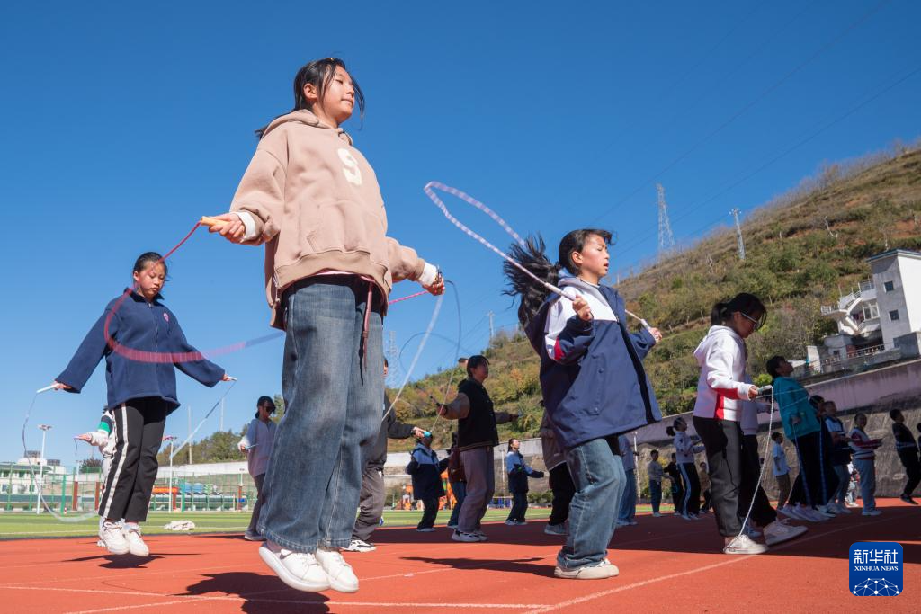 11月12日,在云南省会泽县第一中学,学生在体育课上跳绳。新华社发(彭奕凯 摄)