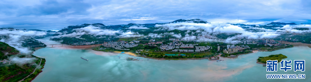 雨后云雾缭绕的江畔小城(10月6日摄)。新华网发(曾三东 摄)