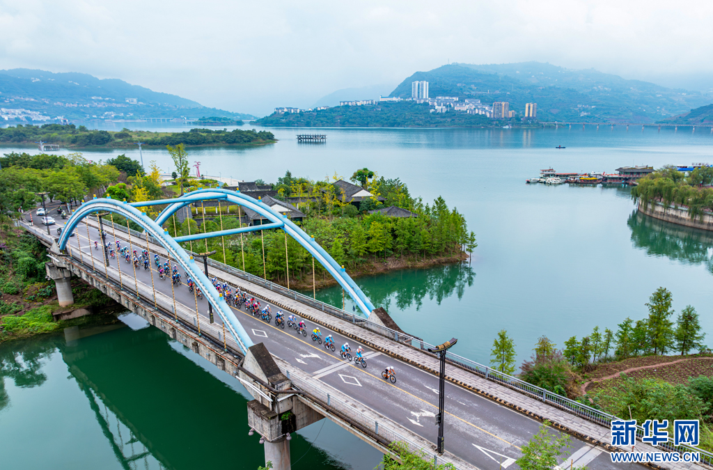 2024环昭通国际公路自行车赛(绥江—水富赛段)比赛现场(11月8日摄)。新华网发(曾三东 摄)