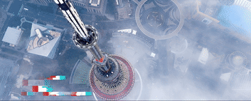 灯火闪烁的繁华都市与线条交错的老弄堂