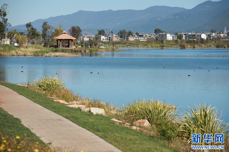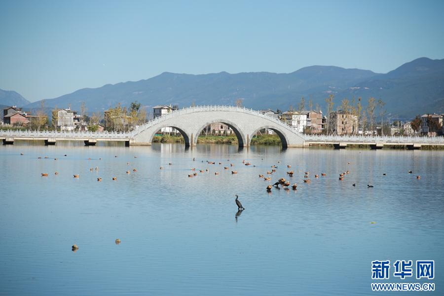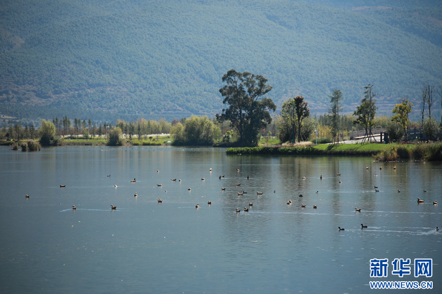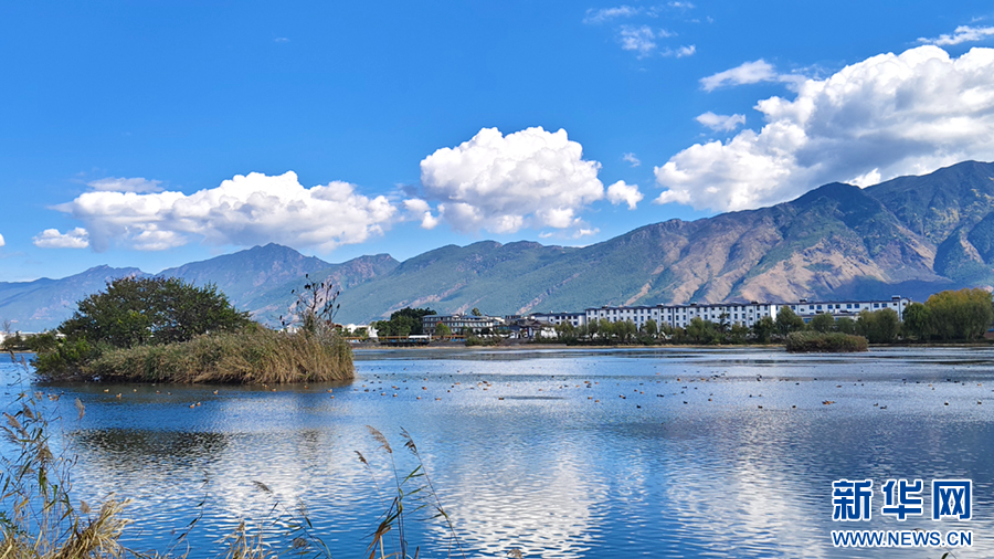 候鸟翩跹,云南省大理白族自治州鹤庆县草海湿地风景如画(12月10日摄)。新华网发(唐忠宇 摄)