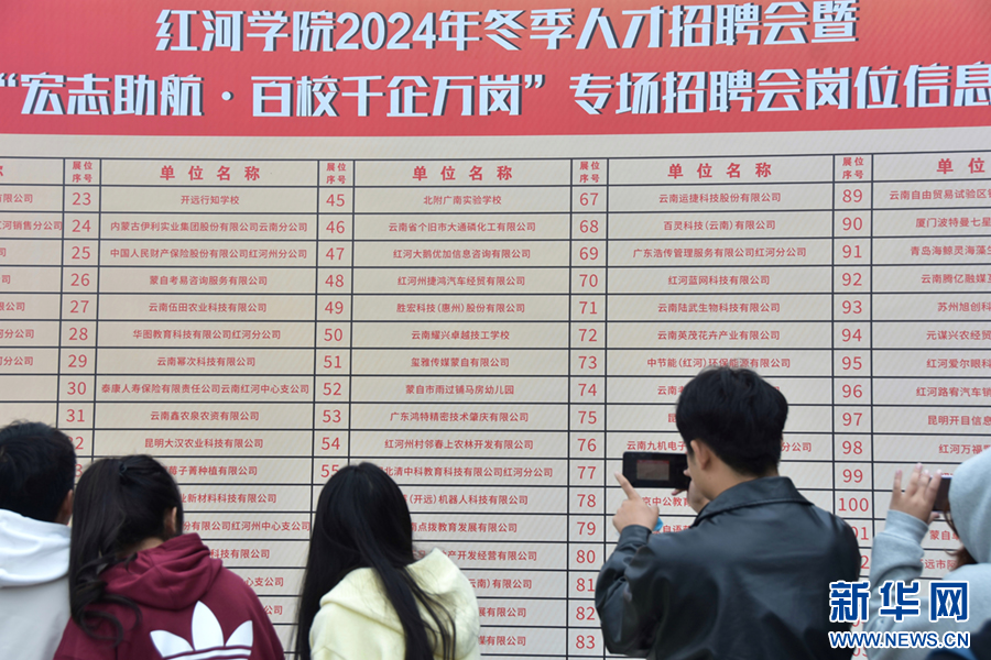 12月13日,在红河学院专场招聘会上,求职者在查看岗位信息。新华网发(薛莹莹 摄)