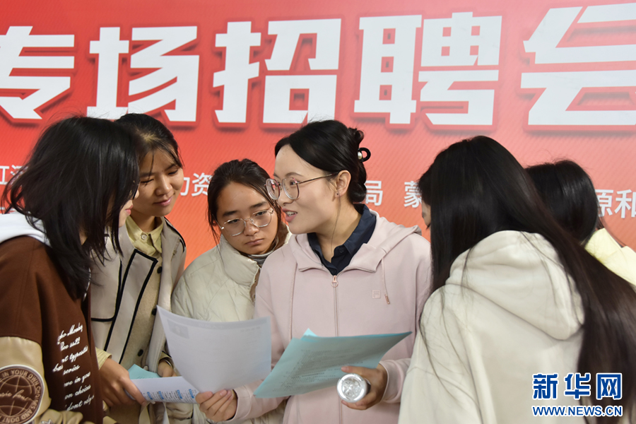 12月13日,在红河学院专场招聘会上,求职者询问岗位信息。新华网发(薛莹莹 摄)