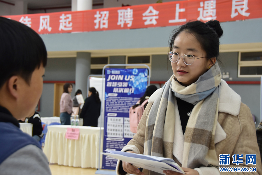 12月13日,在红河学院专场招聘会上,招聘方(中)在给求职者介绍岗位信息。新华网发(薛莹莹 摄)