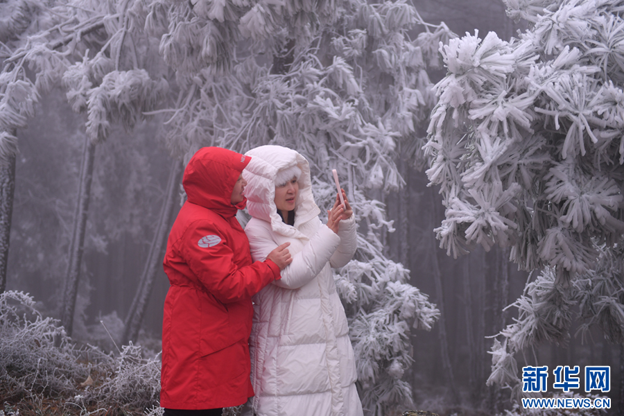 近日,摄影师在云南省文山壮族苗族自治州丘北县舍得彝族乡舍得草场拍摄到美丽的雾凇景观。在银装素裹的山林间,松树的枝干和针叶上挂满了冰凌,身处其间,可以看到树林里弥漫着阵阵雾气,宛如走进了童话世界。新华网发(熊平祥 摄)