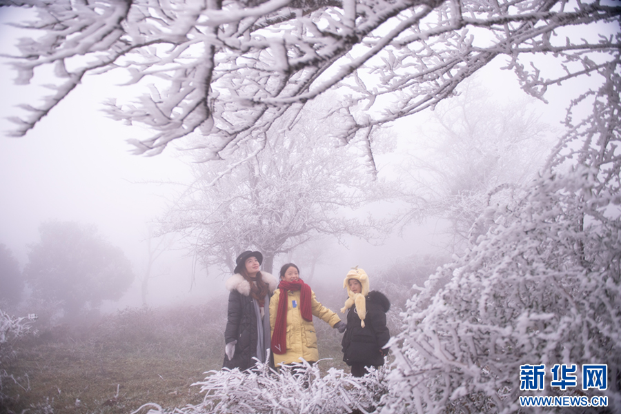 在云南省丘北县舍得乡舍得草场拍摄到的雾凇景观(12月15日摄)。新华网发(熊平祥 摄)