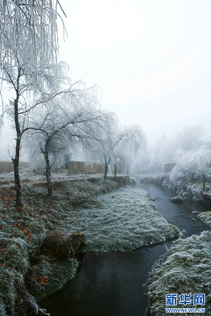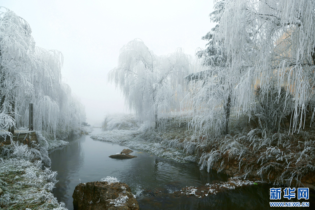 云南大山包黑颈鹤国家级自然保护区道路旁的雾凇(12月15日摄)。新华网发(郑远见 摄)