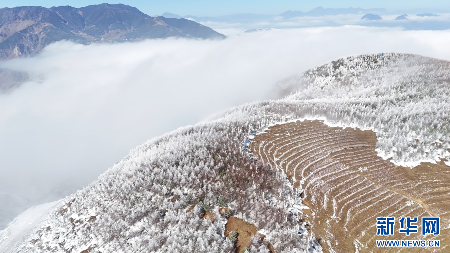 近日,云南省昭通市巧家县东坪镇迎来降雪,漫山遍野,白雪皑皑,宛如巨幅水墨画。(朱发阳 杨明宪)
