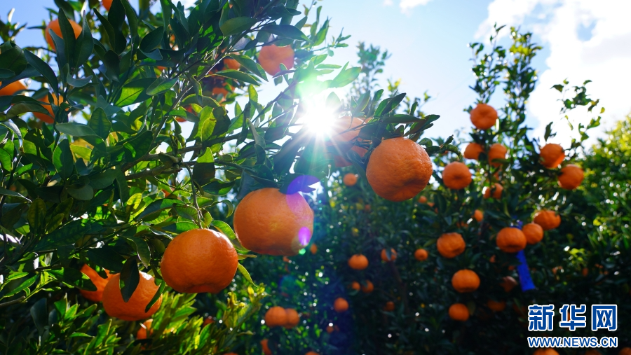 日光下的椪柑(12月22日摄)。新华网发(宾川县融媒体中心供图)