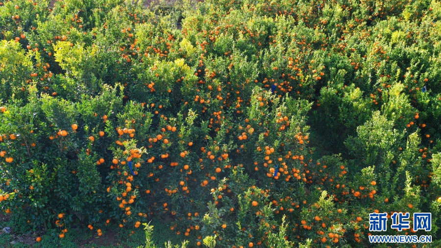 航拍镜头下的椪柑果园(12月22日摄)。新华网发(宾川县融媒体中心供图)