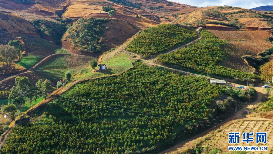 航拍镜头下硕果累累(12月22日摄)。新华网发(宾川县融媒体中心供图)