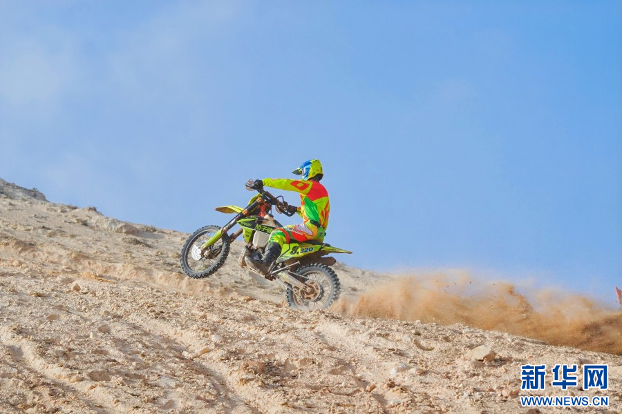 比赛现场,摩托车集结完毕,随着裁判员一声令下,选手们冲出起跑线,轰鸣的引擎声响彻大黑山,爬坡、腾空、急转……惊险刺激的动作引来观众阵阵惊呼。