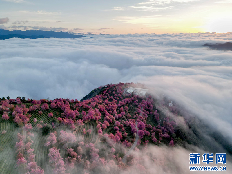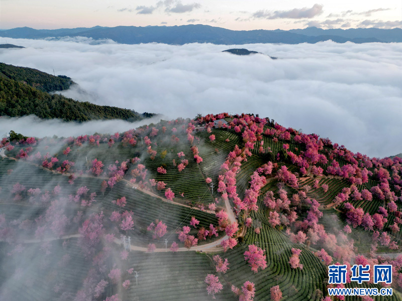 冬日,位于云南省大理白族自治州南涧彝族自治县境内的无量山樱花谷进入了冬樱花最佳观赏期,云海、茶园、冬樱花交相辉映,构成了如诗如画的无量山美景,吸引众多游客前来观赏游览。(完)(适志宏)