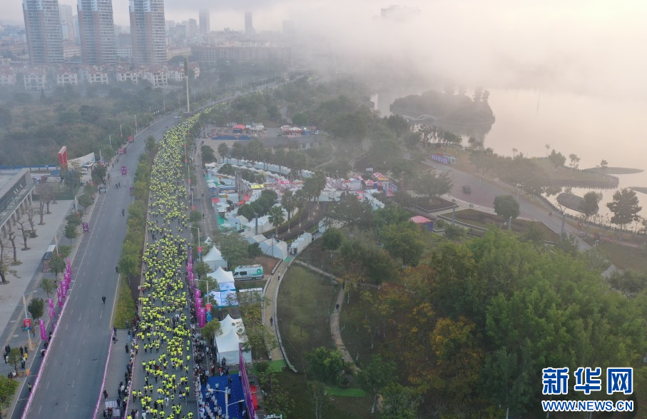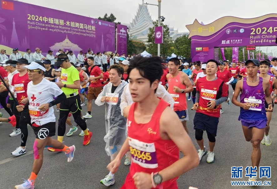 2024中缅瑞丽—木姐跨国马拉松开跑(1月5日摄)。新华网发(刘奕 摄)