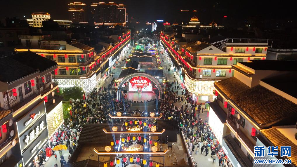 新华网昆明1月6日电 近日,每到夜幕降临后,在云南省广南县城区的句町夜花街上,张灯结彩,游人如织。