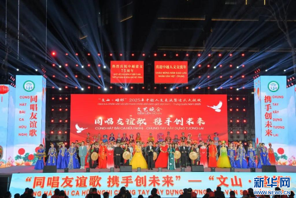 新华网昆明1月14日电 1月13日晚,“同唱友谊歌 携手创未来”——“文山·睦邻”2025年中越人文交流暨边民大联欢系列活动在云南省文山壮族苗族自治州麻栗坡县启动。中越双方边民欢聚一堂,共叙友谊、共商合作、共谋发展。
