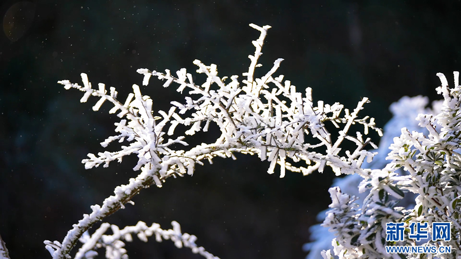 云南梁王山,树木枝头晶莹剔透的冰花(1月13日摄)。
