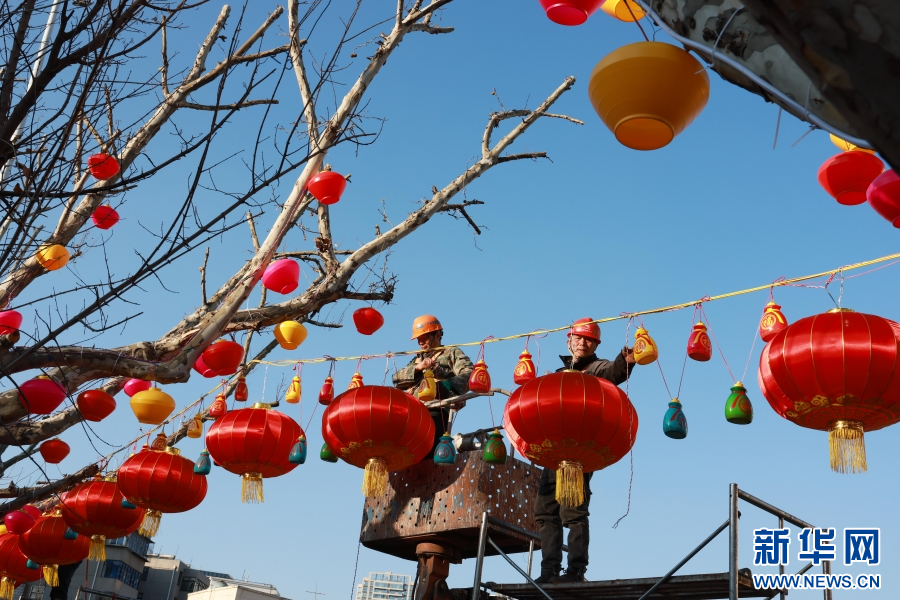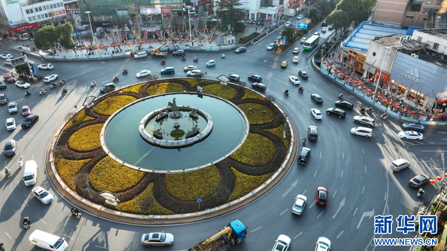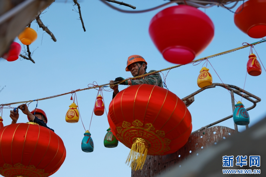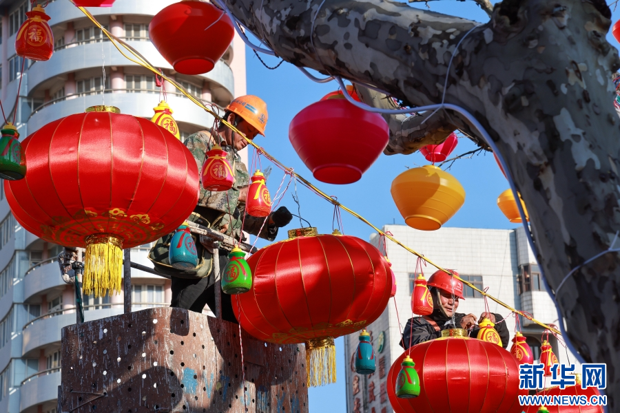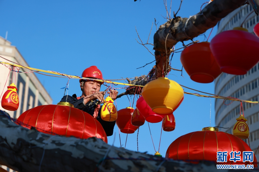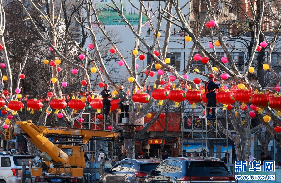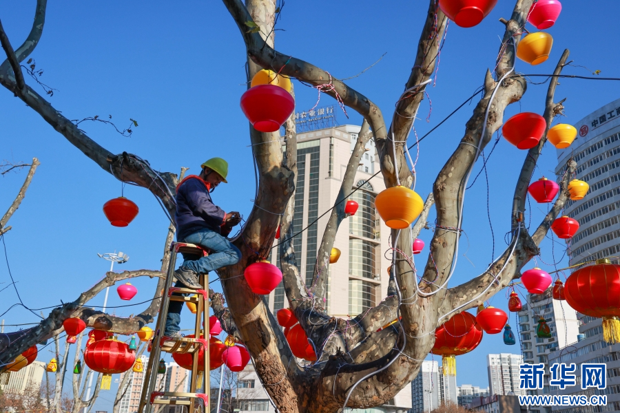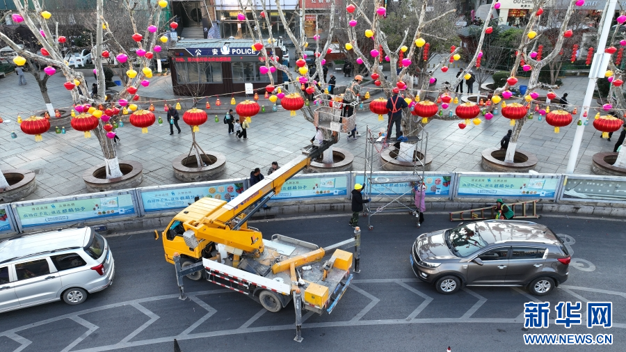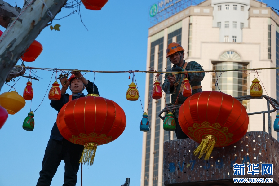 春节临近,年味渐浓。云南省曲靖市麒麟区在城区主要道路、公园进行灯饰安装工作,扮靓城市,为新春佳节增添喜庆的节日氛围。新华网发(孙文来 摄)