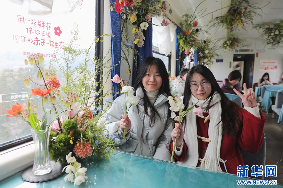 “用一路鲜花,伴你回家”(1月14日摄)。新华网发(杨紫轩 摄)