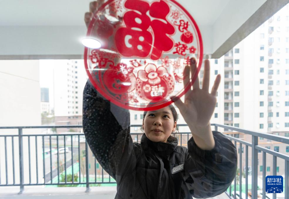 1月16日,受灾村民在新家中贴福字迎春节。新华社记者 陈欣波 摄