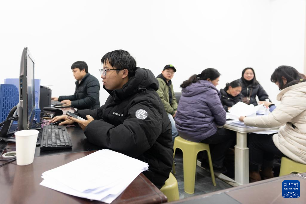 1月16日,工作人员在雄俊园小区党群服务中心整理入住的受灾村民信息。新华社记者 陈欣波 摄