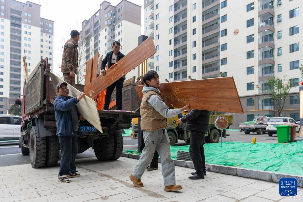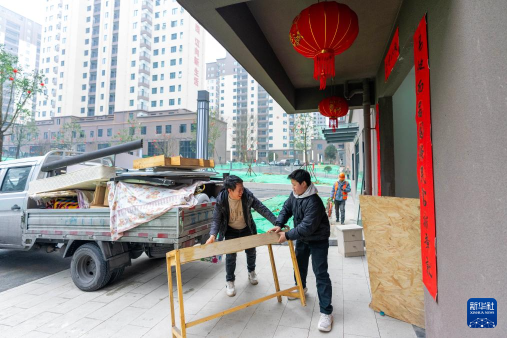 1月16日,受灾村民搬运家具准备入住雄俊园小区的新家。新华社记者 陈欣波 摄