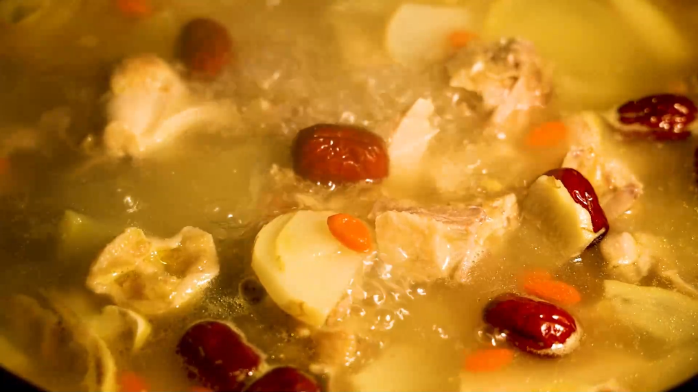 时值寒冬,正是需要温补之时。云南省屏边苗族自治县的居民会以当地野生滇黄精和土鸡为主料,配上昭通天麻、红枣、枸杞、当归等滋补食材,砂锅慢炖,制作成滇黄精煮鸡。随着炖煮,鸡汤逐渐变得金黄透亮,香气扑鼻,一碗热腾腾的鸡汤下肚,温暖瞬间传遍全身,元气满满。
